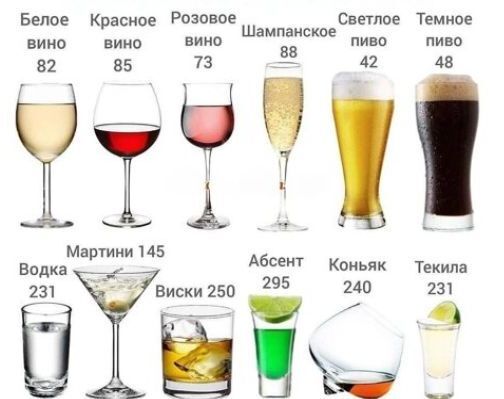 Калорийность разных типов алкоголя