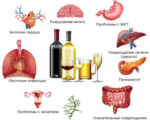 - Наличие серьезных заболеваний до возникновения зависимости и их проявлении в статусе алкоголика.